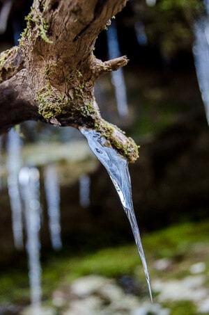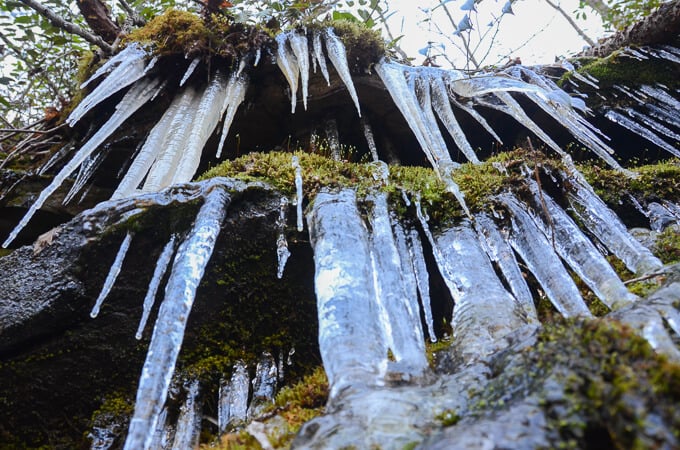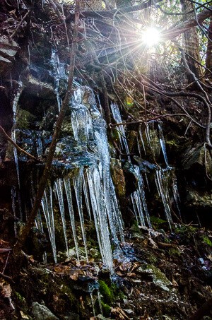 In winter, ice abounds in the shade, and I had a difficult time pulling myself away from studying and photographing icicles. The intricacies of an icicle, when I really stop and study it, never ceases to mesmerize me.