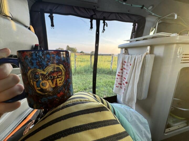 ModVans are a great choice for “dry camping” since they have battery options that don’t require you to plug in at a campground. It’s probably obvious I don’t know anything about batteries and electrical terminology, and I’m not going to try and learn it for this post. Click here if you want to learn more about ModVans come equipped with. 🙃