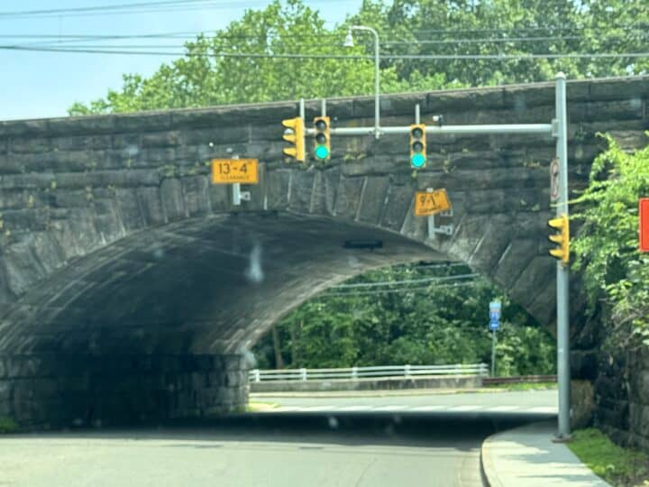After breakfast, I hit the road and the miles tick by at a reasonable pace until I reach Connecticut where I start seeing warning signs for “trucks” and upcoming low bridges. The signs don’t say how low the bridges, so I assume they mean tractor trailer type trucks.
