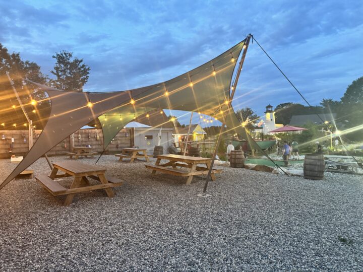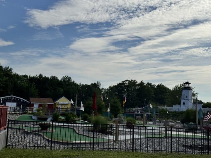After 8-1/2 hours of driving, I arrive at my next Harvest Host location—Schooner’s Mini Golf. For real—I’m camping at a mini golf! They have a designated area behind the parking area for guests, and I pull in beside a white Sprinter van. There’s a seafood restaurant across the street, so I walk over and stand in the long line to order clam cakes, a New England specialty I’ve never tried.