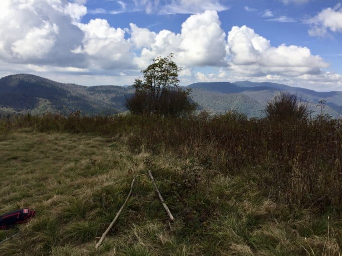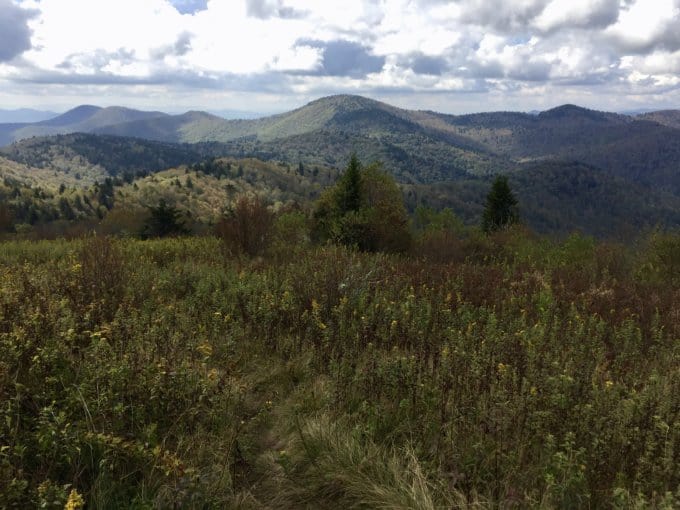 At first, it’s not entirely obvious how much the meadow opens up, but keep hiking and you’ll crest the hill and reach one of my favorite spots in all of Pisgah National Forest, a wide open meadow perched on Fork Ridge. Mt. Hardy is visible to the south, but all of Middle Prong Wilderness seems to stretch out before you in any direction you turn. It’s quite a spot to just sit and soak in the beauty of the high country. Pull out your map and compass and try to identify neighboring peaks and even a small section of the Blue Ridge Parkway. It’s a great activity to do with kids.