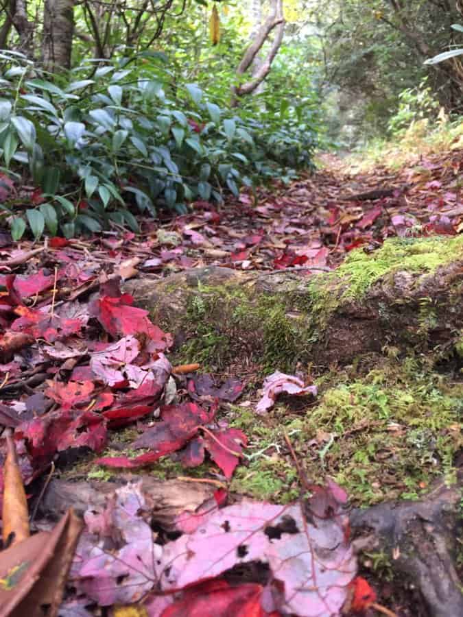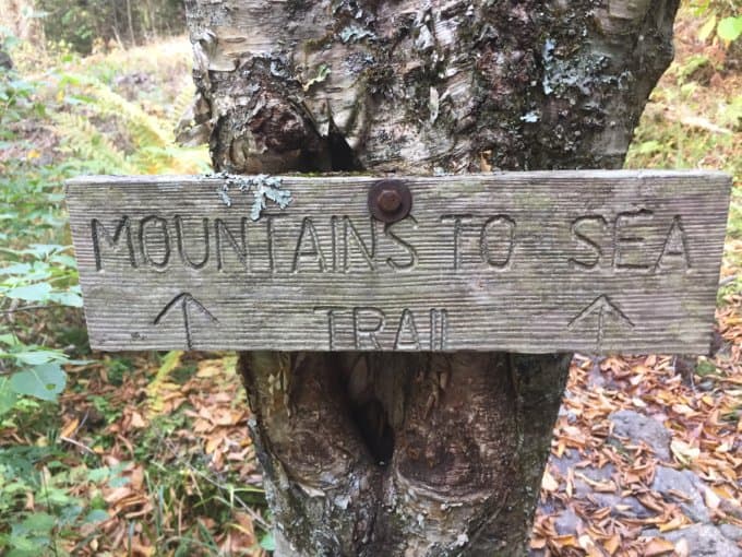 There is a trail that heads into the greenery right from this lot, but do not take this trail. Get back onto the highway, and walk about 200 feet further north (downhill) on the highway, and look for the Mountains To Sea (MTS) trail marker on the left. Turn onto the trail here. (borrowed from Brenda Wiley’s blog post, since it was so well written)