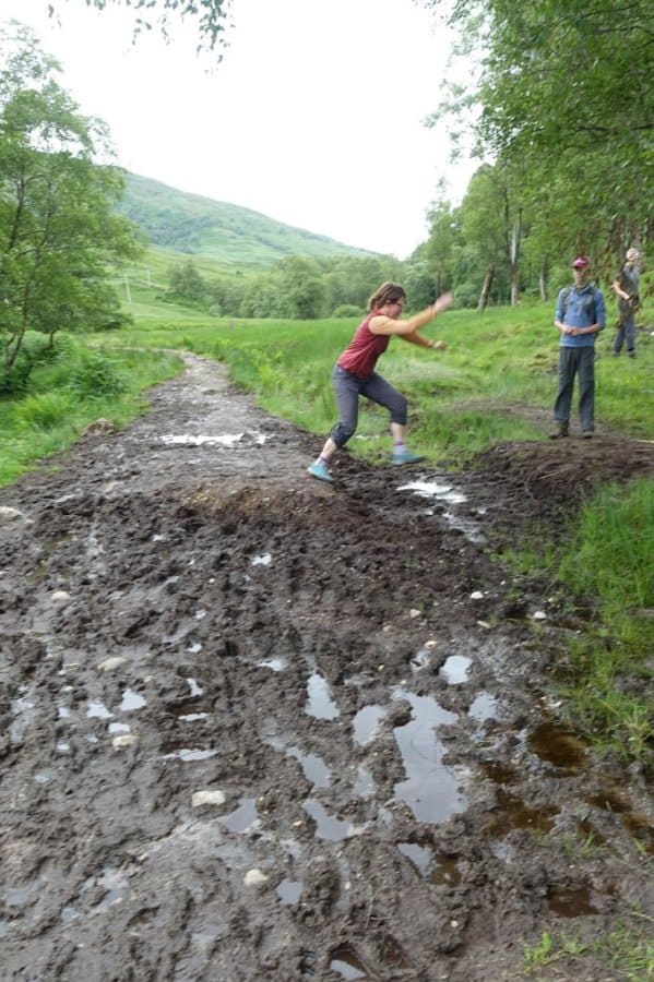 The kids hiked with a spring in their step, even more so after they bought some candy at an “honesty box” that we passed. Actually, springs in our shoes would have been quite helpful, as we passed through one of the muddiest sections of the trail we’d encounter. Shoe sucking, thick, deep mud covered the trail and provided some good laughs as we all seemed to choose different paths, often getting stuck on an “island” of safer ground but needing to leap to the next safe spot! I became even more envious of the Laursen family’s long legs as they leapt like gazelles across the muddy abyss, whereas my short legs looked like something more akin to a pot-bellied pig making the jump!