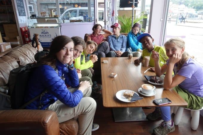 We arrived in plenty of time for the train and had a fabulous afternoon exploring Oban. Diana and I took the kids to the Oban Chocolate Company which felt like a European version of Asheville’s French Broad Chocolate Lounge. Larry and John enjoyed the local scotch distillery, and we all enjoyed window shopping and a dinner of fish and chips (the best we’d had yet!).