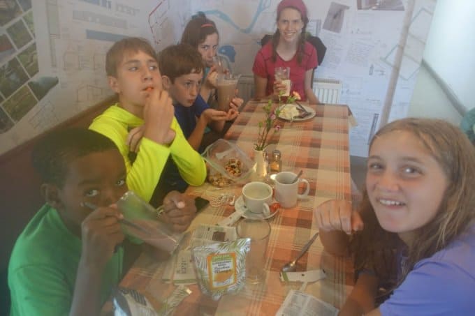 There’s only so much you can do to lift everyone’s spirits, including your own, in a driving rain, but the “At Least It’s Not…” game always does the trick for my own attitude. We learned it from our friends Mel and Jeanne, who we met and hosted as they were hiking the Appalachian Trail. It works like this: When you’re feeling low on the trail, start reminding yourself of the things that aren’t happening that would make your situation worse. For instance, on this day, I reminded the kids, “At least we’re not being pelted by hail” and “At least most of our miles are behind us today and it’s all downhill from here.” You get the point. The kids had a more difficult time seeing the silver linings, but it definitely helped me get through the rough stuff!
