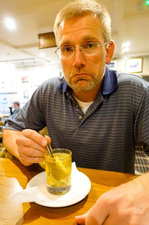 - “Enjoying” his hot toddy
